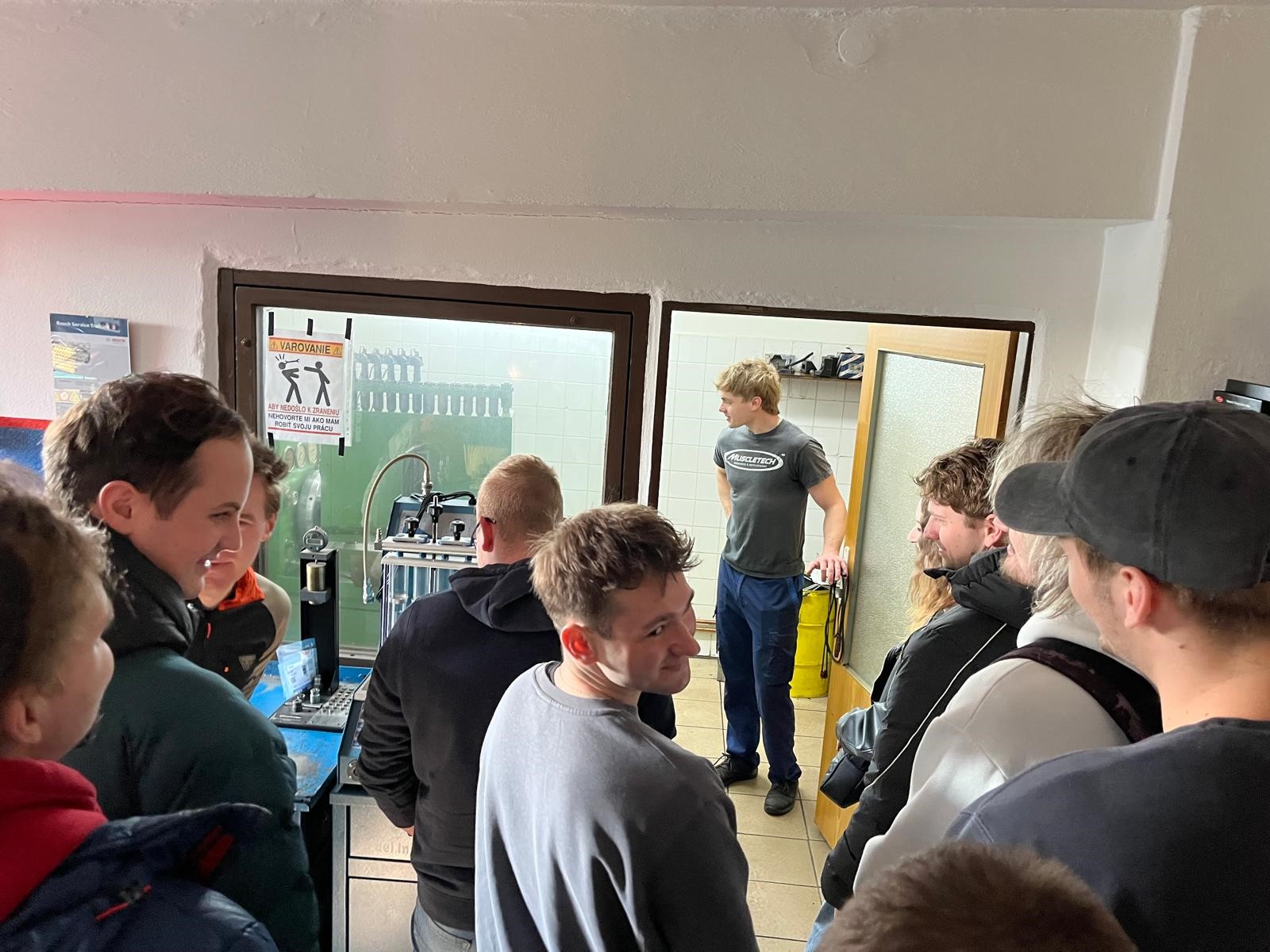 Během návštěvy jsme viděli zkušební stavy pro řadová vstřikovací čerpadla, u kterých nám byl vysvětlen princip funkce i způsob jejich seřizování. Následně jsme se přesunuli ke stanovišti určenému pro testování benzínových vstřikovacích trysek systému TSI Bosch.